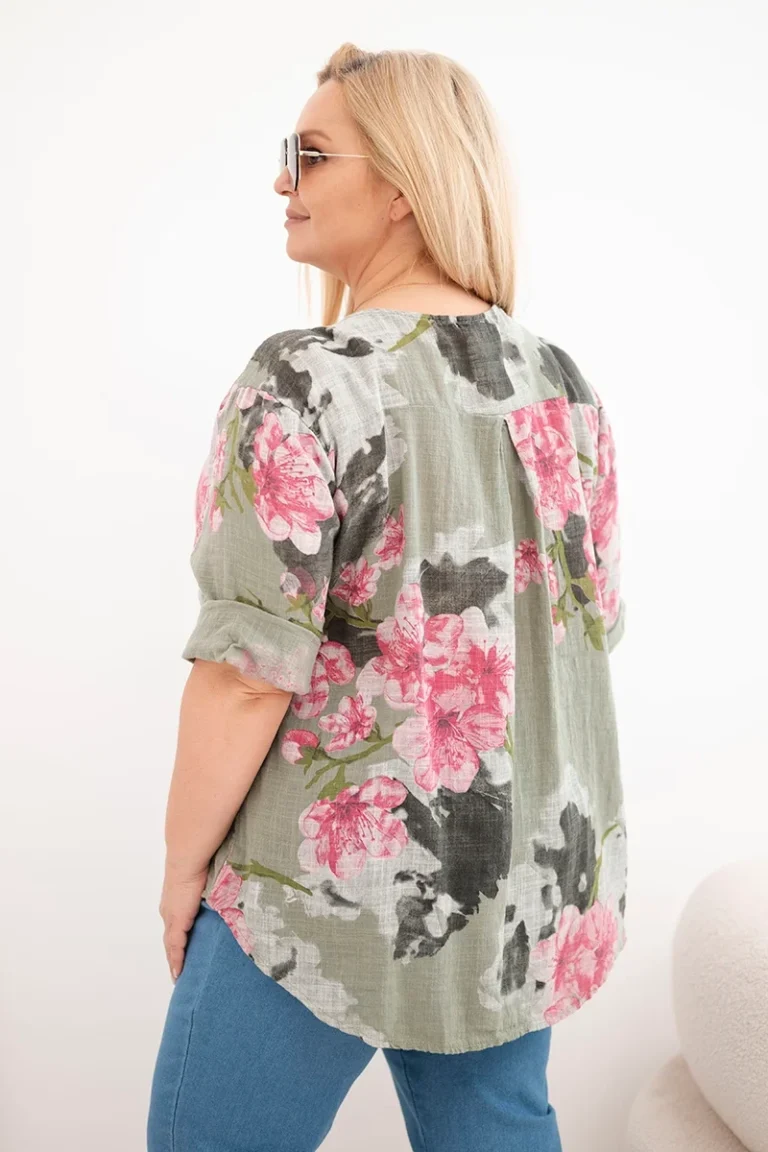 Plus size kvetovaná bavlnená blúzka ART10881-1 - khaki