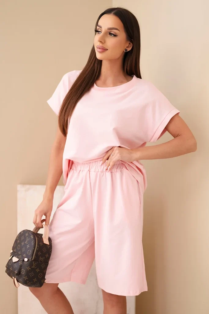 Bavlnený bermudový komplet ART0673 – púdrovoružová