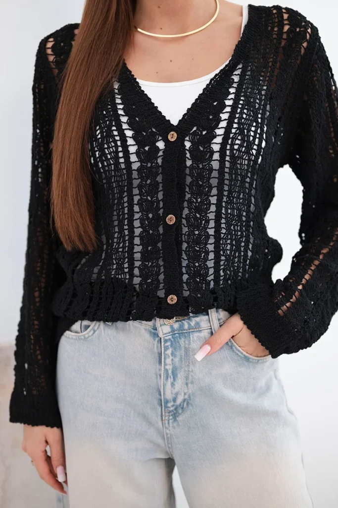 Dierkovaný letný svetrík ZS28094 – čierna
