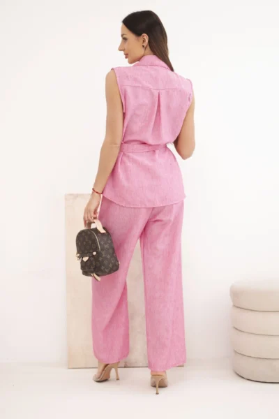 Komplet so širokými nohavicami a blúzkou s opaskom IT125 – ružová