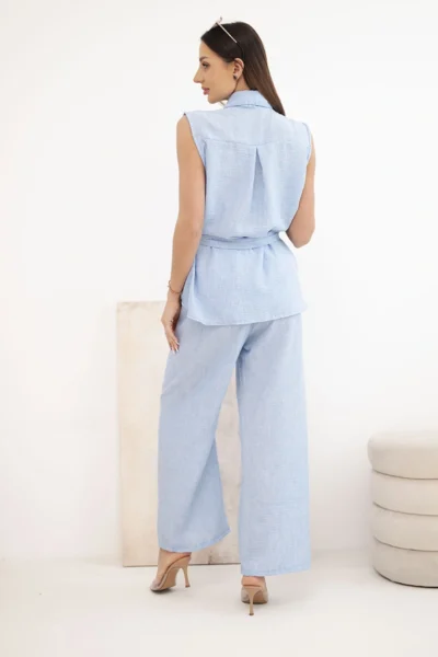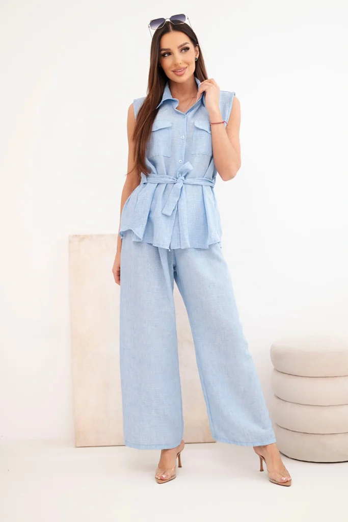 Komplet so širokými nohavicami a blúzkou s opaskom IT125 – svetlomodrá