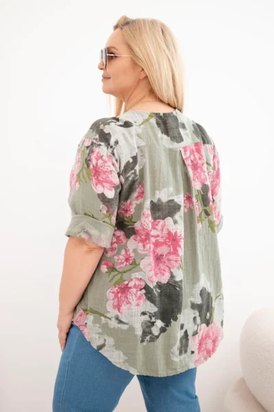 Plus size kvetovaná bavlnená blúzka ART10881-1 – khaki
