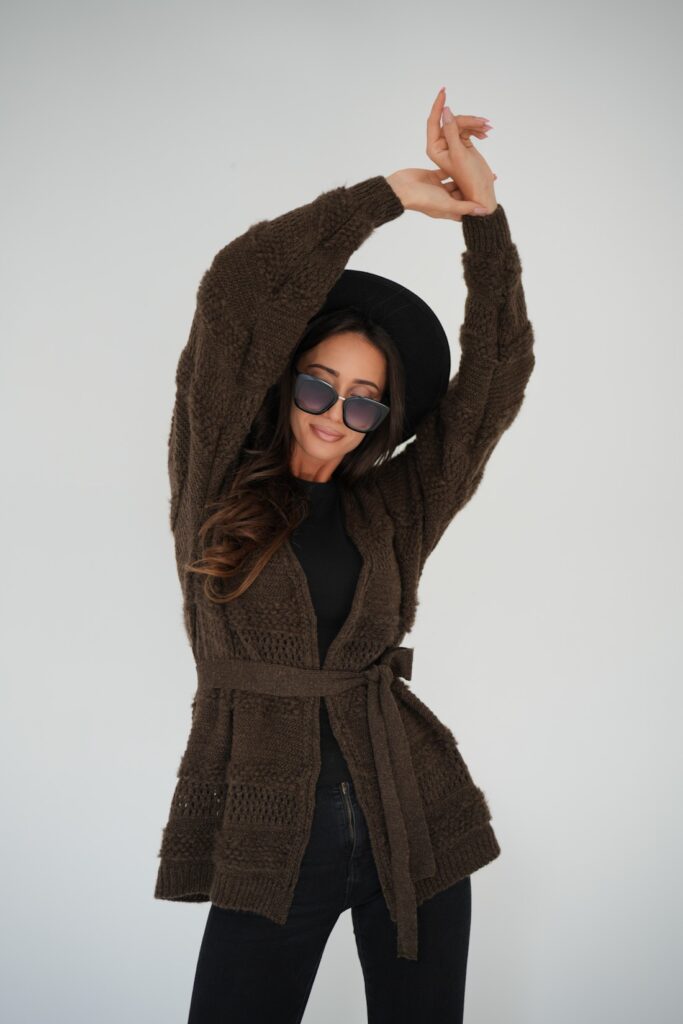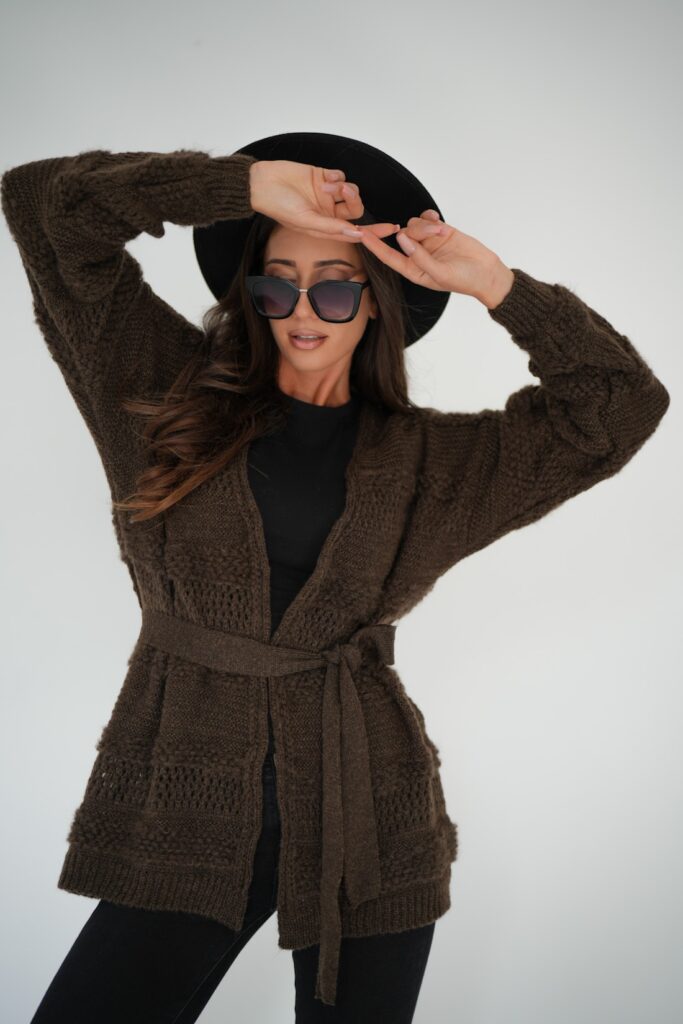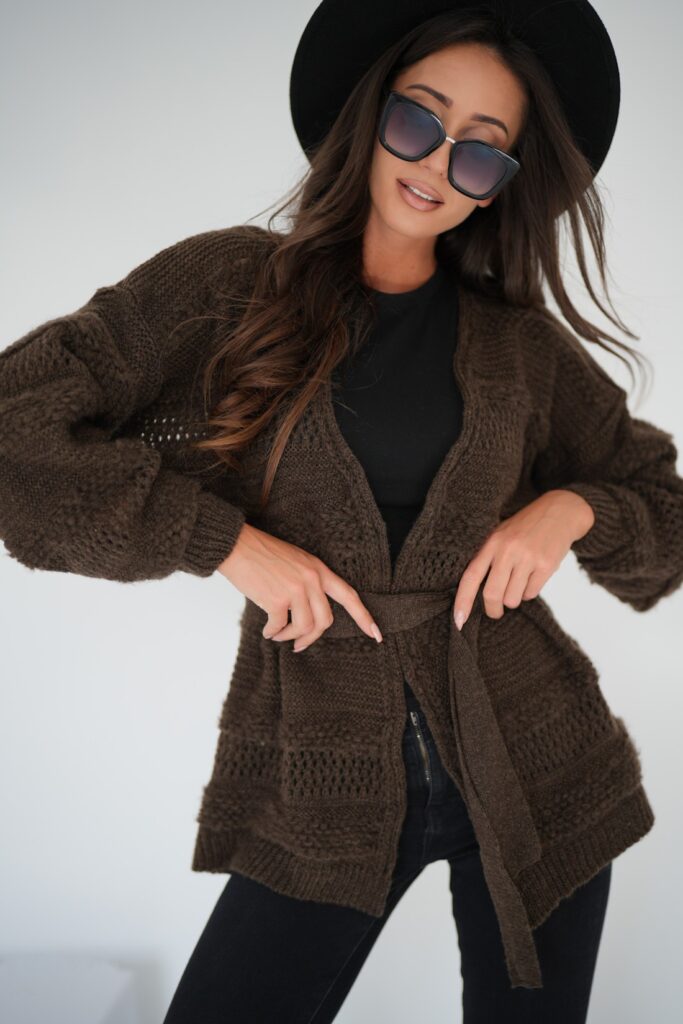 Vzorovaný kardigan Cozy SW242-24 – choco